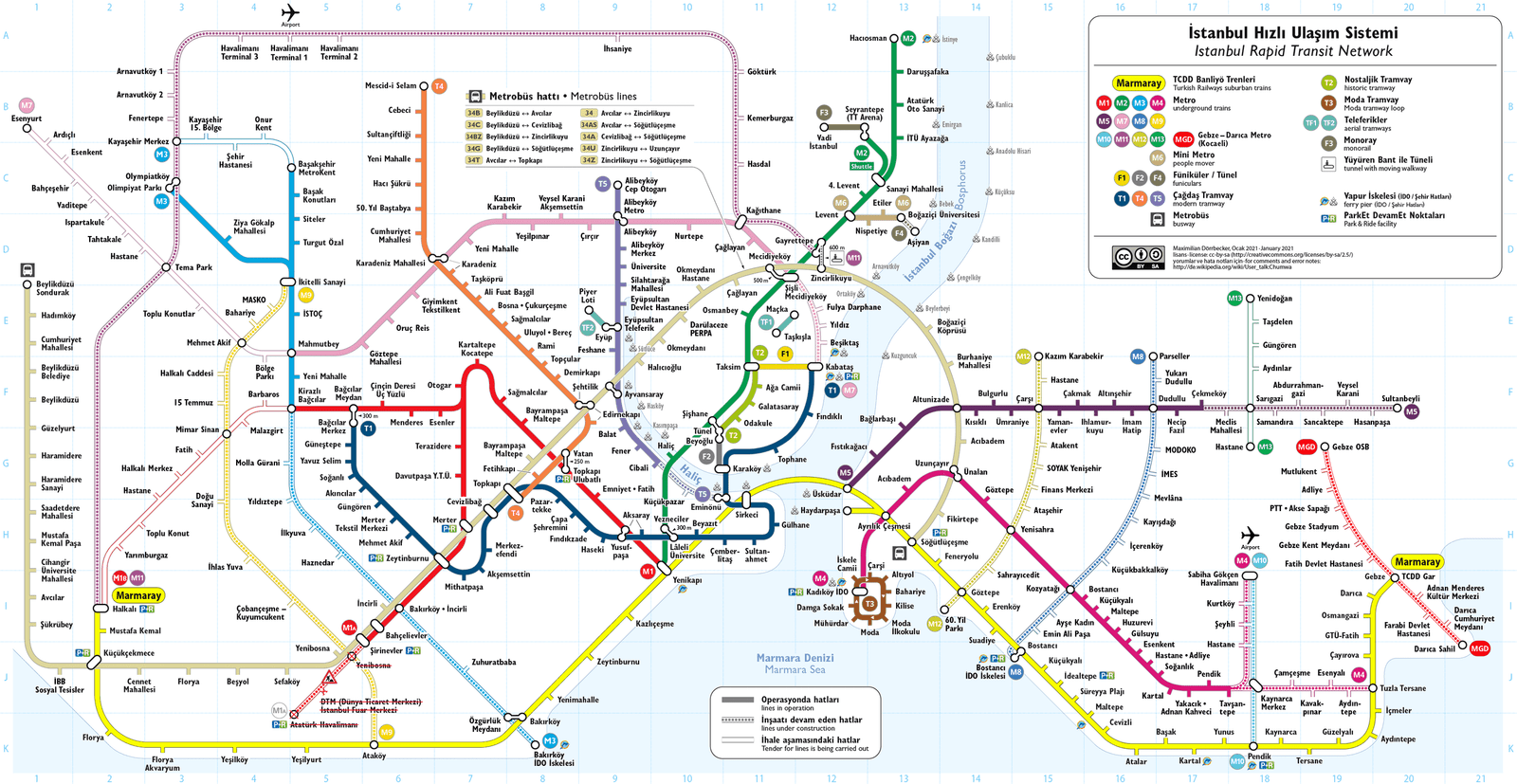 Офіційна карта метро та транспорту Стамбула (метро, трамвай, фунікулери, канатні дороги)